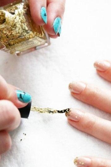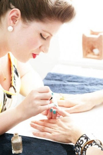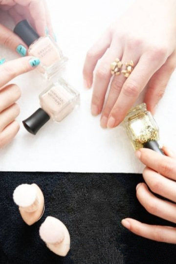 準備好了嗎?我們現(xiàn)在開始吧。 跟隨著Harley Viera-Newton, Alexa Chung 和 Zooey Deschanel這些引領(lǐng)美甲潮流運動的女星們的腳步(是的,我們稱其運動!),裝扮你們的指甲似乎變成很嚴肅的事情。從明星們夜空般漆黑的甲色到碧昂斯那嬰兒藍常春藤般的指甲,如果沒有創(chuàng)意對紐約那些頂尖的美甲師們來說就只能“出局”了。 來自所需的產(chǎn)品:營養(yǎng)底油、裸色甲油、一款細小閃片的金色甲油、一款閃片更大些的金色甲油、護甲亮油。