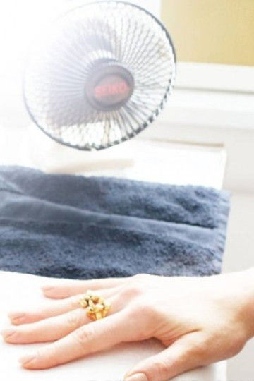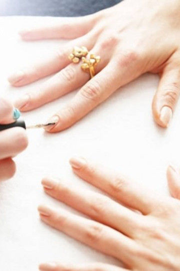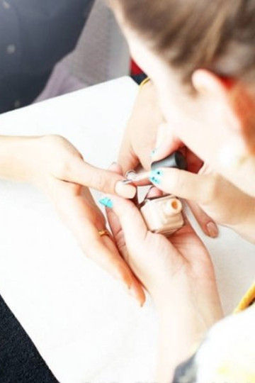 第4步:記得要涂兩層甲油(“這樣顏色會保持得更久些”),而且一定不要讓刷頭碰到角質(zhì)層。盡管她說即使不小心碰到了也不是多么可怕的事情。 “人們總是認為她們沒有辦法涂自己的指甲,但其實她們可以——只要避開角質(zhì)層就好了。如果你在角質(zhì)層染上甲油,顏色就會在淋浴時脫落,尤其是在你洗頭發(fā)時。還有在做美甲的四個小時內(nèi)不要洗澡,或者是第二天再洗。熱水是指甲油的天生勁敵,它會導(dǎo)致指甲顏色起皺或掉落。