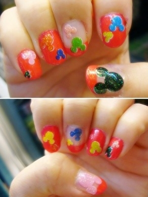 厭倦了平淡色彩的MM不如選擇這款美甲,五彩繽紛的色彩會(huì)讓你體會(huì)到撞色的感覺,經(jīng)典童真米奇頭圖案個(gè)性十足!
