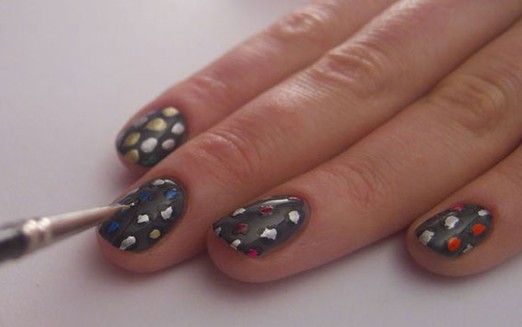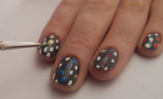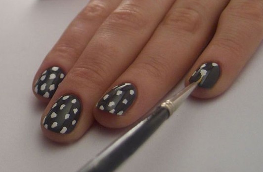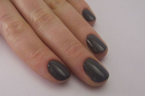步驟二:涂上深灰色指甲油,噴上快干噴霧,稍等一會兒。