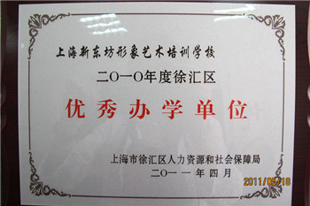 2010年度-上海市徐匯區(qū)人力資源和社會保障局評為 <優(yōu)秀辦學(xué)單位>