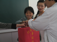 今天,我校進行募捐活動,"一方有難,八方支援",老師與同學(xué)都獻出了自己的一份愛心救援四川汶川受災(zāi)的同胞們。