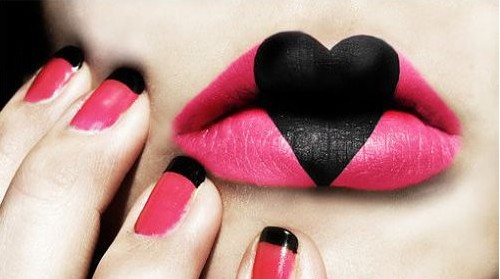 看著這樣的造型,讓人情不自禁就想起了愛(ài)麗絲里面的紅心皇后。桃紅色的唇膏非常妖艷。利用唇峰的形狀畫(huà)出了黑色的桃心,讓整個(gè)唇妝添上了一份神秘和黑暗的感覺(jué)。在指甲上也是采用了跟唇妝相對(duì)應(yīng)的桃紅色和黑色,做出了桃紅色為主的黑色美甲,簡(jiǎn)潔而神秘。