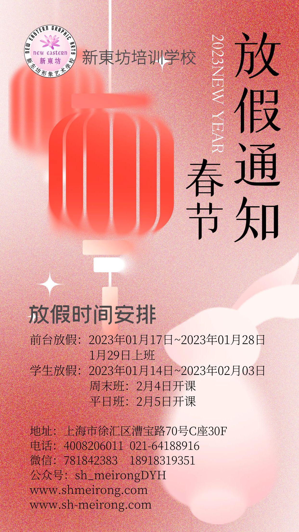 1月29日上班(接待咨詢報名)學(xué)生放假:2023年01月14日~2023年02月03日